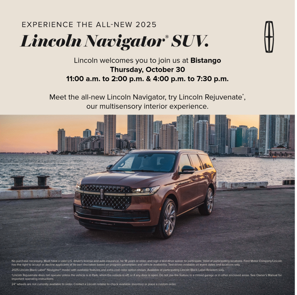 Meet the all-new Lincoln Navigator, try Lincoln Rejuvenate, our multisensory touch experience.